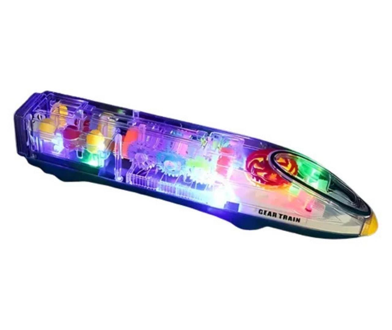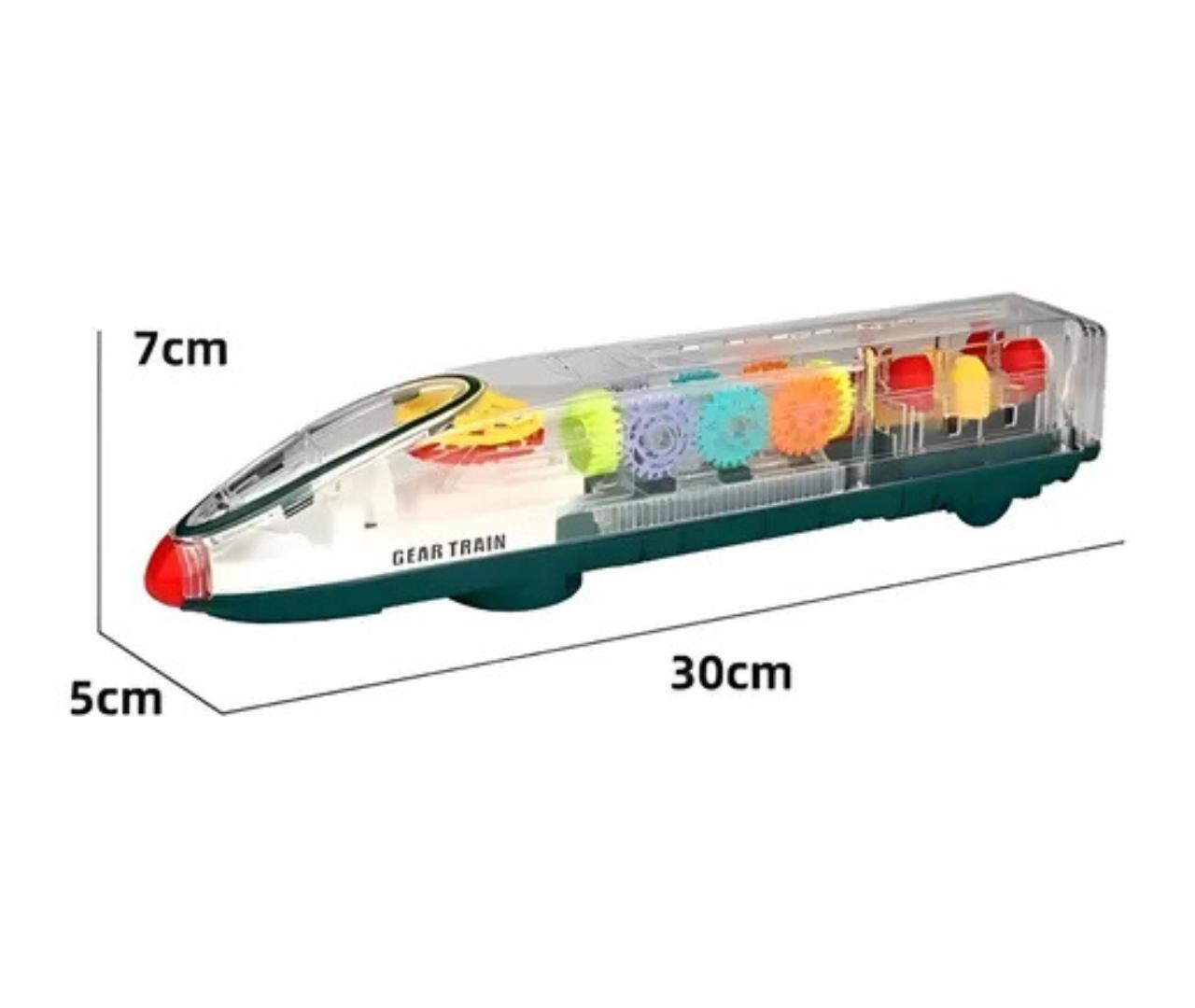 Encante As Crianças Com O Trenzinho Gear Train Com Design Transparente, Luzes Coloridas E Músicas Animadas, Ele Permite Ver O Movimento Das Engrenagens Em Ação. Move-se Para Frente E Para Trás Com Motor Elétrico, Tocando Sons E Músicas Que Animam Qualquer Ambiente.