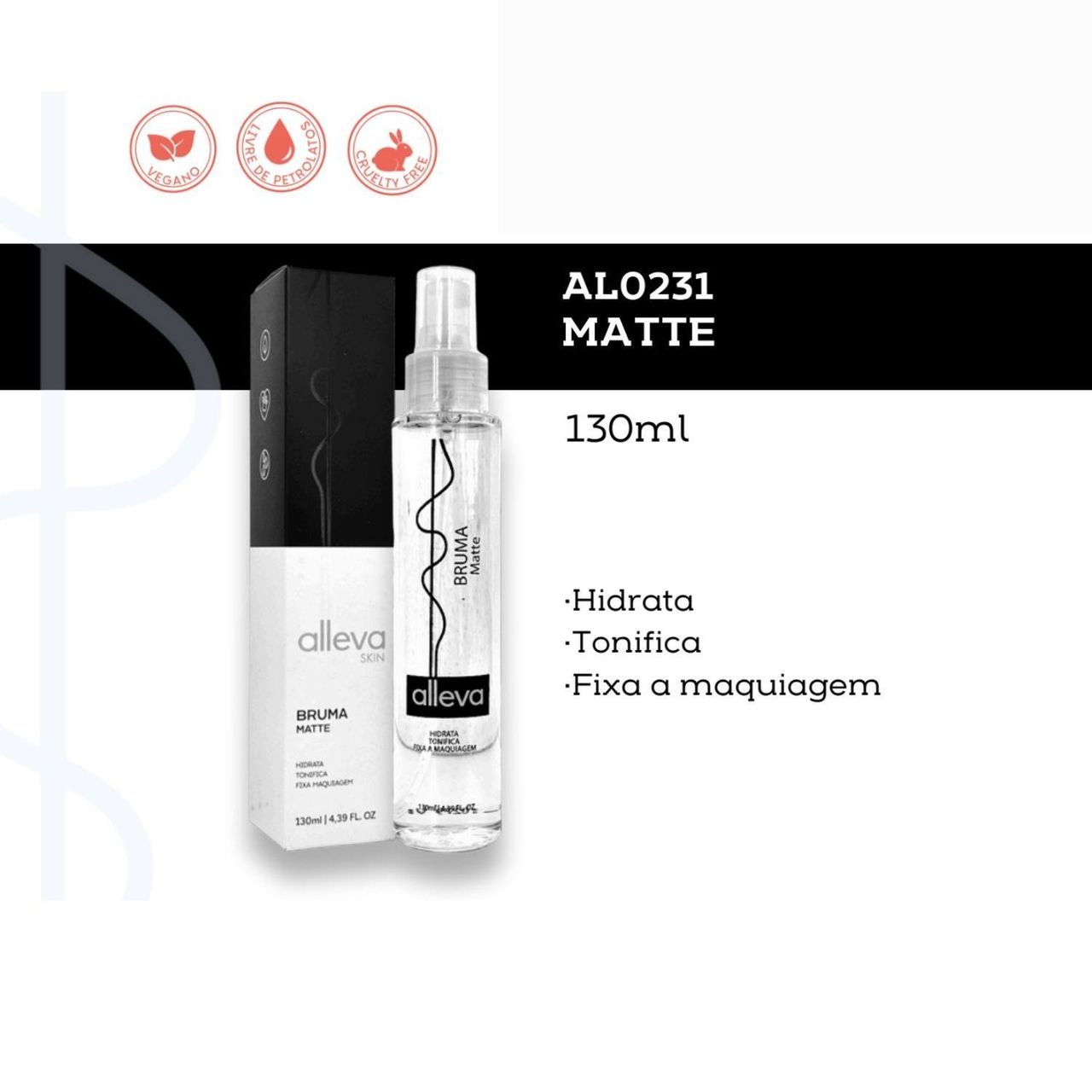 - Bruma Matte: É A Solução Perfeita Para Quem Deseja Uma Maquiagem Com Acabamento Matte, Livre De Brilho, Mas Com Hidratação De Longa Duração. Essa Bruma Inovadora Ajuda A Fixar A Maquiagem, Garantindo Que Seu Visual Se Mantenha Impecável Por Horas. Sua Fórmula Não Apenas Fixa, Mas Também Hidrata A Pele, Proporcionando Um Toque Suave E Confortável. Ideal Para Ser Usada Após A Aplicação Da Maquiagem, Ela Ajuda A Controlar O Excesso De Oleosidade Ao Longo Do Dia, Deixando A Pele Com Aparência Fresca E Equilibrada. Sua Aplicação É Prática E Rápida, Tornando-se Indispensável Para Quem Busca Um Acabamento Sem Brilho E De Longa Duração. A Bruma Matte Alleva É A Escolha Ideal Para Quem Deseja Manter A Maquiagem Intacta, Com Um Efeito Sequinho E Confortável.