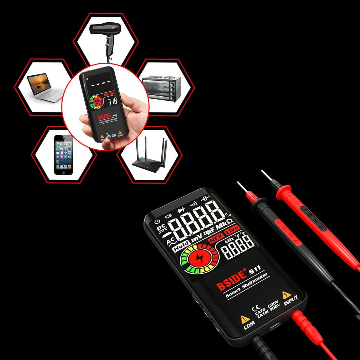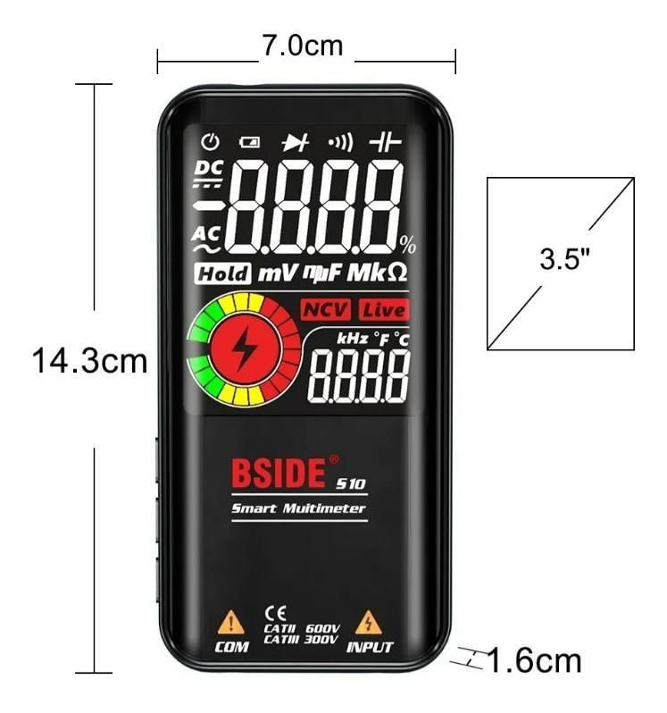bside S10 Inteligente 9999 Contagens Multímetro Display Lcd Digital Voltímetro Ac/dc Ohmímetro Teste De Resistência Capacitância Freqência Diodo Continuidade Ncv Linha Viva Com Flash Light Data Hold