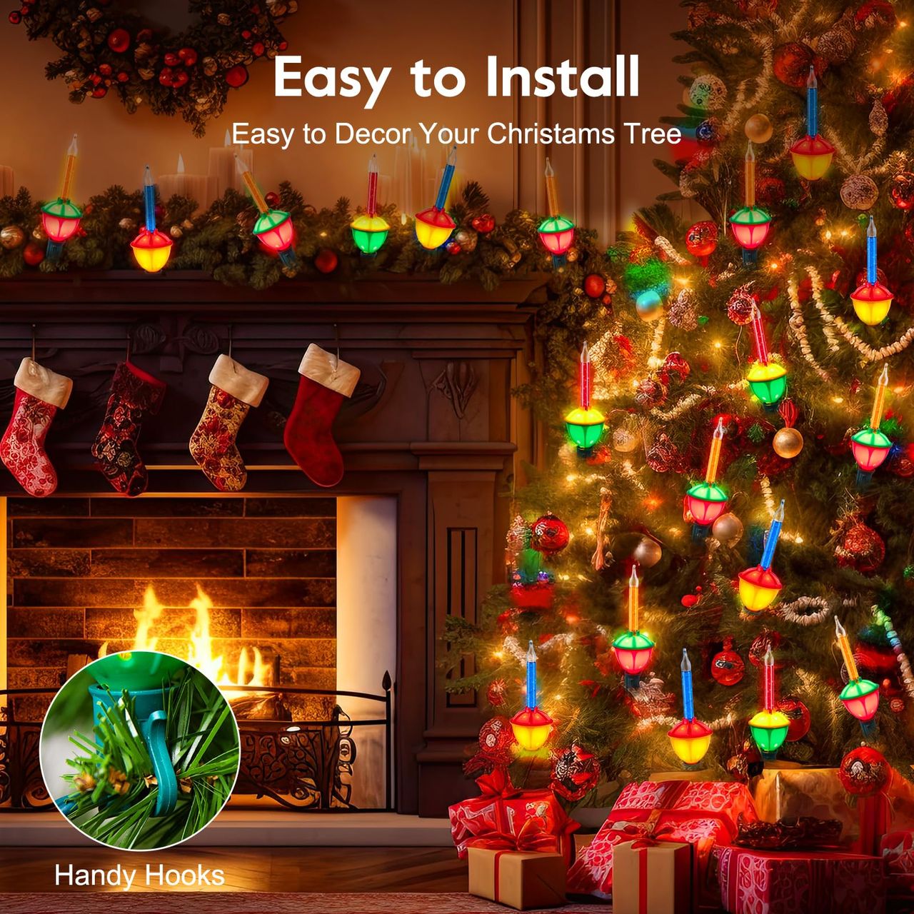 Muitos De Nossos Clientes Dizem Que Essas Luzes Antiquadas Trazem De Volta Memórias De Infância Do Passado De Natal. Basta Colocá-los Na Lareira Junto Com Vegetação, Envolvendo-os Em Uma Árvore De Natal. As Luzes Vermelha, Laranja E Azul Vão Bem Contra Uma Árvore Verde.