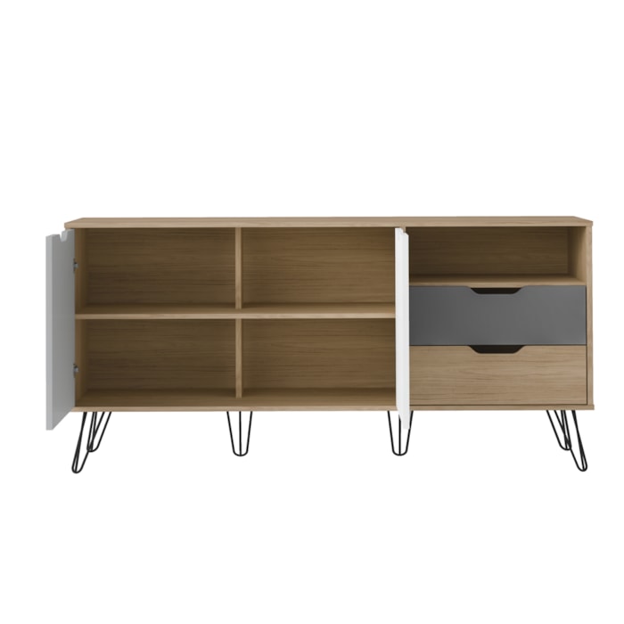 Com Design Elegante Em Linhas Retas E Tons Neutros, O Buffet É Perfeito Para Compor Salas Modernas. Conta Com Duas Portas Com Dobradiças De Metal, Duas Gavetas Espaçosas E Um Nicho Aberto, Ideais Para Armazenar Louças, Talheres Ou Criar Uma Bancada Para Bebidas E Objetos Decorativos. Possui Prateleira Interna Fixa, Tampo Amplo E Pés Metálicos Que Trazem Estabilidade E Um Toque Moderno. O Acabamento Em Pintura Uv Texturizada E Acetinada Oferece Beleza E Fácil Manutenção. Este Móvel Chegará Em Sua Casa Separado Em 02 Volumes.