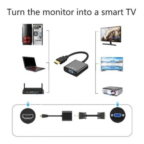 Cabo Adaptador Conversor Hdmi Macho Para Vga Fêmea Monitor Projetor Audio Com P2