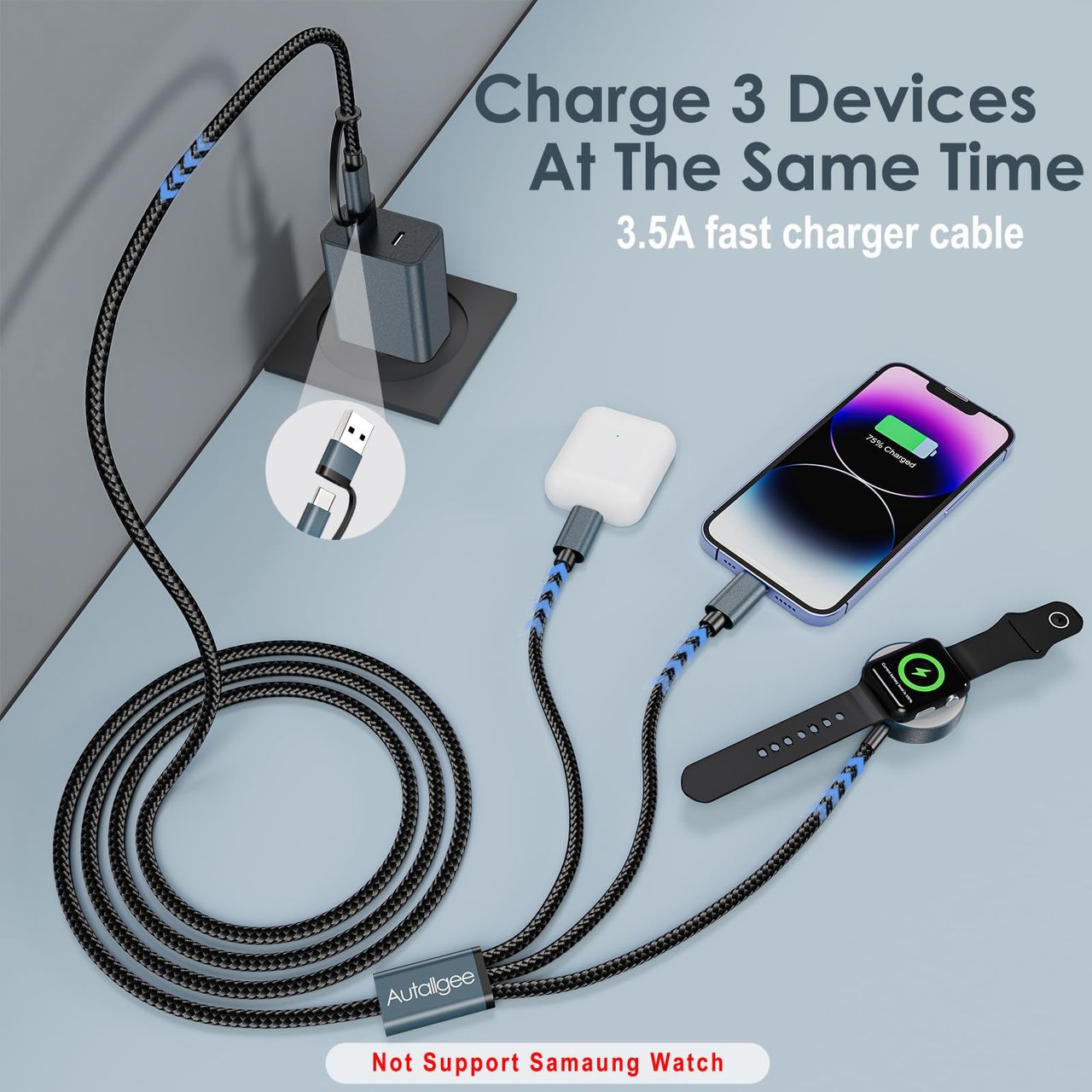 - 🎁 Super 3 Em 2 Multifunções: O Cabo Multicarregamento Autallgee Tem 6 Formas De Carregamento - Carregador Usb C/a Para Iwatch E Cabo Usb C/a Para Iluminação E Cabo Usb C/a Para Tipo C. O Que É Notável É Que Ele Pode Carregar Três Dispositivos Diferentes Simultaneamente, Nosso Cabo De Carregador Múltiplo É Compatível Com Iwatch Ultra 2/ultra/se 2/se/series 10/9/8/7/6/5/4/3/2/1, 【observe Que Não Suporta Carregamento De Relógio Samsung】iphone16/15/14/13/12/11/8/7 Pro/max/plus/airpods 4. /pro 2, Samsung Galaxy S24/s24+/s24 Ultra/s23/s22/s21/s20.