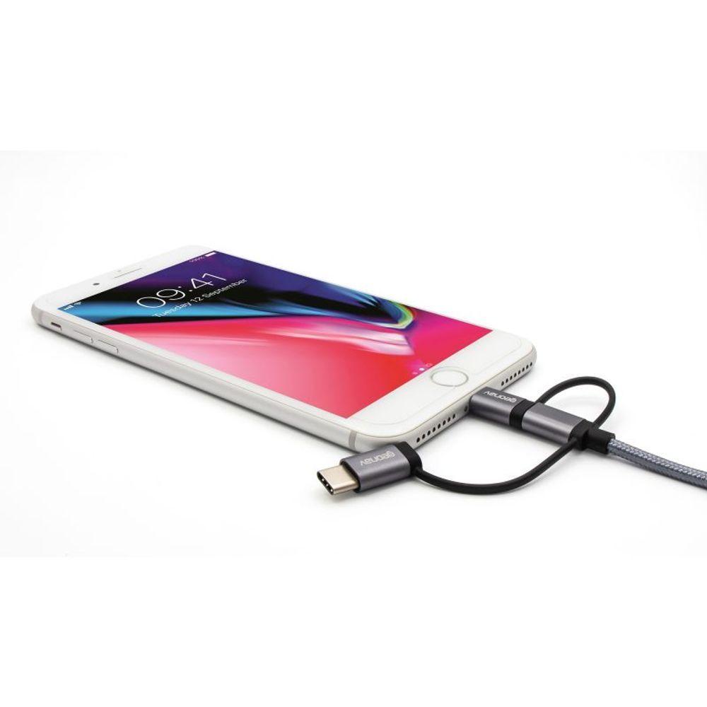 Cabo Multicable 3 Em 1 Lightning (mfi) Micro-usb | Usb-c Com 1,5 Mo Cabo 3 Em 1 Multi Cable Lightning / Micro Usb / Usb-c Geonav É Versátil Pois Pode Ser Usado Com Smartphones E Tablets Android, Incluindo Modelos Mais Recentes Com A Porta Usb-c, E Também Iiphones, Iipads E Iipods Touch Para Carregar A Bateria Ou Sincronizar Dados Do Dispositivo Com O Computador. Com Acabamento Em Nylon Trançado E Pontas Metalizadas Que O Torna Ainda Mais Resistente.compatibilidade: Todos Aparelhos Com Entrada Micro Usb E Entrada Usb-c E Aparelhos Aapple Com Conector Lightning, Compatível Com Todos Os Modelos De Iiphone.