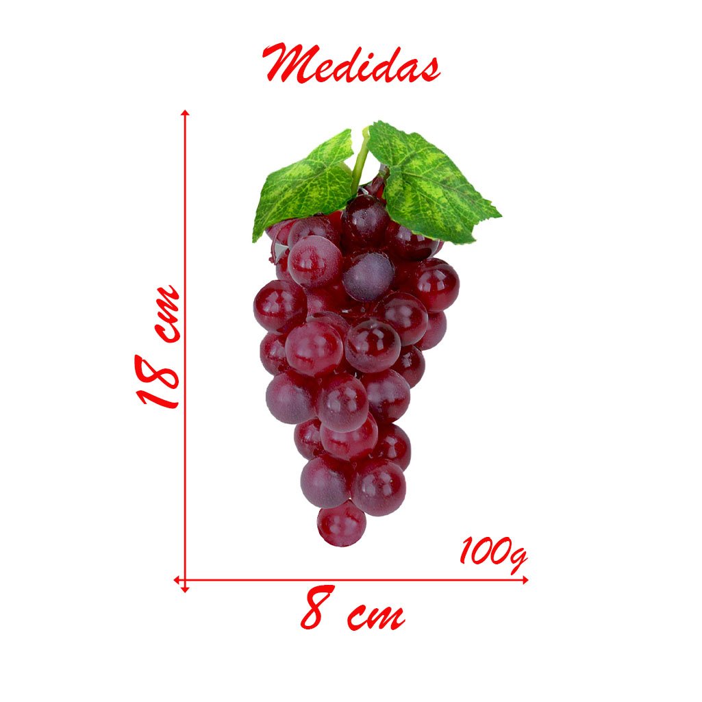 Cacho De Uva Avermelhada Fruta Artificial De Silicone 18cm -