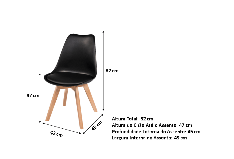 Assento em Polipropileno com almofada em PU Base em madeira com acabamento arredondado Largura 49cm Profundidade 43cm Altura até o assento 45cm Altura até o encosto 82cm