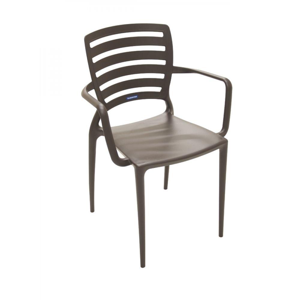 Cadeira Sofia Encosto Vazado com Braço Marrom TramontinaA sofia é um fenômeno. Líder de vendas. Veio com uma proposta diferente: Robusta, bonita e moderna.Cadeira com braços monobloco de polipropileno e fibra de vidro, na cor marrom.Especifiações Técnicas:- Peso Líquido: 4,0000 kg.- Peso Bruto: 4,8000 kg.- Metragem: 0,252106 m.- Dimensões Embalagem (Compr. X Larg. X Alt.): 510x 585x 845 mm.- Dimensões Produto (Compr. X Larg. X Alt.): 510x 590x 845 mm.- Marca: TRAMONTINA - Referência: 92036109- Garantia: 3 Meses.