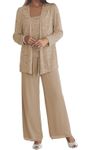 - Calças De Chiffon Para Mulheres, Elegantes E Longas, Para Mãe Da Noiva, Para Casamento, 3 Peças, Lantejoulas, Vestidos Formais Para Noite Com Jaquetas