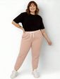 Calça De Moletom Feminina Plus Size Jogger Tecido Flanelado Com Bolso Rosê | Calça De Tamanho Grande Para Mulher