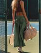 - Estilo De Cintura Alta, Cintura Elástica, Detalhes De Bolso Definidos, Costura Contrastante, Pernas Super Largas, Cortadas No Tornozelo Natural