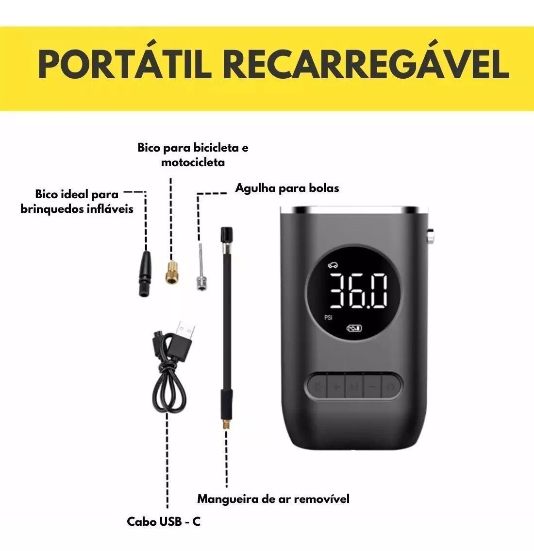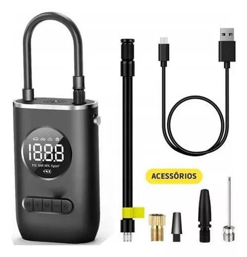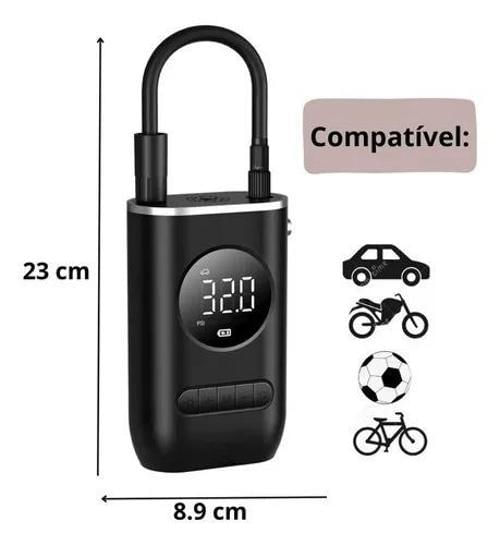 Compressor Portátil Com Bateria Interna De 2000mah Recarregável, Com Visor Digital De Pressão.