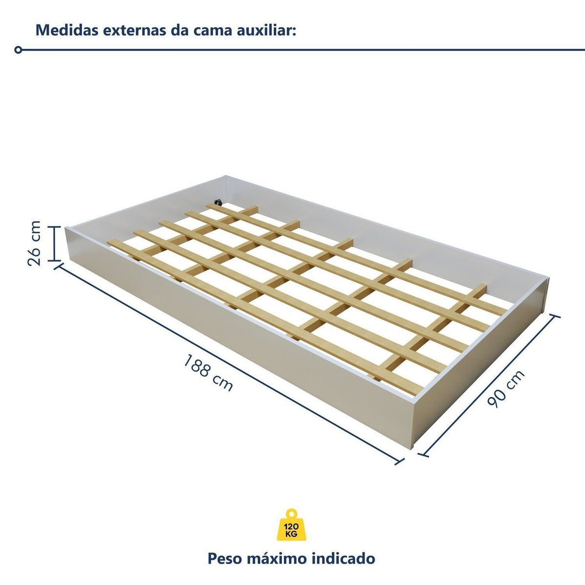 Marca:josandro|possui Grade:não|cor Do Produto:branco|possui Baú:não|complexidade Da Montagem:média: Pode Ser Montado Por Mais De Uma Pessoa E/ou Necessite De Maior Conhecimento Para Montagem|rodízio Com Trava:não|profundidade:90 Cm|acabamento:mdp|garantia:03 Meses|largura:188 Cm|necessita Montagem:sim|possui Prateleiras:não|escala De Brilho:semi-brilho|tipo De Cama:auxiliar|origem Do Produto:nacional|ambiente Principal:quarto|material Principal:mdf/mdp|acompanha Cama Auxiliar:não|extensível:não|permite A Utilização De Cama Auxiliar:não|peso:50 Kg|tipo De Colchão:solteiro|altura:26 Cm|acompanha Colchão:não|sistema De Montagem:parafusos|tamanho Do Colchão Indicado (l X C):188x88|possui Portas:não|altura Do Estrado Até O Chão:16 Cm|possui Rodízio:sim|material Do Estrado:madeira|possui Pés:não|tipo De Estrado:removível|cor Predominante:branco|possui Gavetas:não|suporta Até (kg):120 Kg|itens Inclusos:1 Cama Auxiliar, Kit Ferragens E Manual De Montagem|cor:branco|recomendações De Uso, Manutenção E Limpeza:utilizar Pano Macio Levemente Umedecido E Na Sequencia Pano Macio Seco.|linha Ou Coleção:move|produto Montado:sim