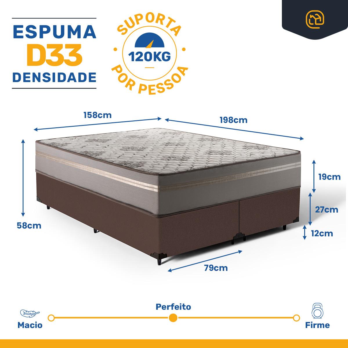 Descubra O Equilíbrio Perfeito Entre Conforto E Suporte Com Nosso Colchão De Espuma D33, Revestido Com Tecido Jacquard E Poliéster. Ideal Para Quem Precisa De Uma Base Firme, Suportando Até 120 Kg Por Pessoa. Modelo Ortopédico, O Que Garante A Posição Correta Para Sua Coluna Durante O Seu Sono. Com Um Sistema One Face Que Elimina A Necessidade De Virar O Colchão, Este Produto Simplifica A Manutenção Diária. Desfrute De Noites Tranquilas Com Um Colchão Projetado Para Durabilidade E Conforto Médio. Procurando Uma Base De Cama Que Ofereça Não Só Suporte Robusto Mas Também Soluções Práticas? A Base Da Lucas Colchões É Perfeita Para Quem Precisa De Praticidade. Ela Não Só Eleva Seu Colchão A Uma Altura Ideal Para Fácil Acesso, Mas Também Estabiliza Seu Sono Com Uma Fundação Sólida E Confiável. Facilidade De Transporte E Instalação Em Locais Com Acesso Limitado, Como Escadas Estreitas E Elevadores Pequenos. Essa Característica Torna A Base Bipartida Ideal Para Apartamentos E Casas Com Espaço De Circulação Restrito. Especificações Técnicas Do Colchão:- Matéria Prima: Espuma D33/tecido,- Acabamento: Tecido Jacquard E Poliéster,- Sistema One Face: Tecnologia No Turn(permite Girar O Colchão),- Eps Poliestireno Expansível: Possui,- Tipo De Conforto: Médio,- Peso Máximo Recomendado: Até 120kg (por Pessoa),- Garantia: 12 Meses,- Dimensões Do Produto (larg. X Comp. X Alt.) 158x198x19cm, Especificações Técnicas Base Box:- Marca: Lucas Colchões,- Material: Madeira Tratada,- Peso Máximo Recomendado: Até 150 Kg (por Pessoa),- Altura Da Base: 27cm,- Altura Dos Pés: 12cm,- Revestimento: Sintético,- Garantia: 3 Meses,- Dimensões (larg. X Comp. X Alt.) Queen: 158x198x39cm Bipartido(2 Partes De 79). Importante, As Cores Podem Variar Conforme A Tela, Não Oferecemos Montagem, Recomendamos Profissionais Qualificados. Confira As Dimensões Para Transporte Em Elevadores E Passagens. Não Transportamos Por Meios Especiais. Por Se Tratar De Um Produto De Uso Íntimo E Pessoal, Só Aceitaremos Devoluções Por Arrependimento Apenas Se A Embalagem Do Produto Não For Violada.