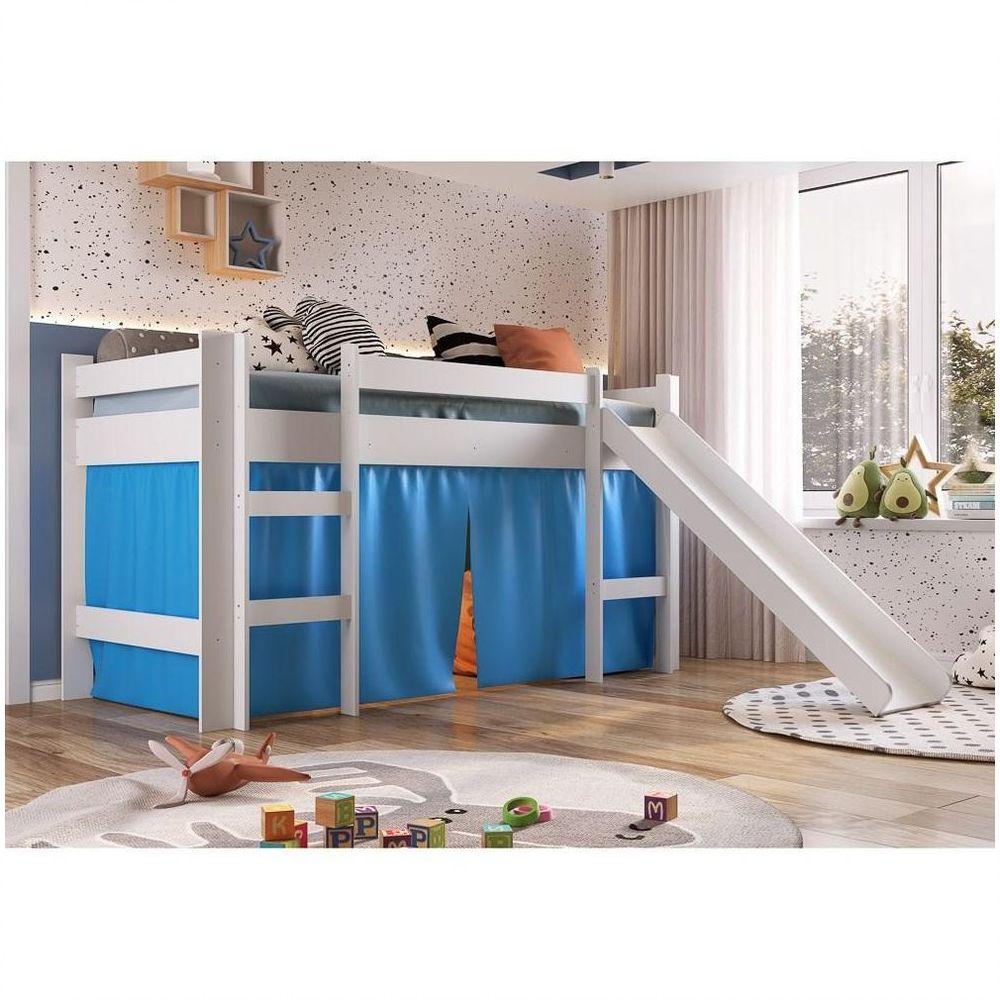 Cama Elevada Com Escorregador E Cortina Bb1000 Branco/azul - Completa Móveisseus Pequenos Merecem O Melhor!que Tal Oferecer Ainda Mais Diversão E Praticidade No Cômodo Das Crianças? Sim, Agora Com O Lançamento Da Completa Móveis, A Hora De Dormir Também Fica Divertida, Confira!a Cama Alta Com Cortina É Um Móvel Ótimo Para Compor O Quarto Das Crianças, Possui Estrutura Em Mdp De Alta Qualidade E Acabamento Em Bp, Aumentando Resistência E Prolongando A Vida Útil Do Produto. Ela Conta Com E Dois Degraus Do Lado Esquerdo Que Dão Acesso Á Cama E Escorregador Do Lado Direito, Demais Né? Mas O Ponto Legal Deste Produto É Que Possui Cortina Na Parte Inferior, Oferecendo Espaço Confortável E Aconchegante Para Seus Pequenos Brincarem Á Vontade! Um Arraso, Né?não Deixe Para Depois! Garanta Já!dimensões Do Produtolargura: 202 Cm.altura: 110 Cm.profundidade: 93 Cm.peso: 40 Kg.medida Indicada Para Colchão: 188 X 78 Cm.outras Medidas:largura Da Escada: 39 Cm.largura Do Escorregador: 36 Cm.profundidade Do Escorregador: 117 Cm.características Do Produtomaterial Da Estrutura: Mdp.peso Suportado: Até 50 Kg Sem Impacto.acabamento: Bp.escala De Brilho: Fosco.possui Pés: Sim.diferenciais: - Design Moderno. - A Cama Possui 02 Degraus. - Escorregador Para O Acesso Da Criança A Cama. - Espaço Na Parte Inferior.sistema De Montagem: Parafusos / Cavilhas / Porca Elíptica / Sapata Plástica.manual De Montagem: Sim.complexidade Da Montagem: Média.volumes: 2 Volumes.conteúdo Da Embalagem: 1 Cama Alta.garantia Do Fabricante: 90 Dias Contra Defeito De Fabricação.montagem: Recomendamos Que Seja Feita Por Um Profissional.recomendação De Limpeza: Utilize Pano Levemente Úmido.observações Importantes - Produto Para Uso Residencial Em Ambiente Interno, Não Devendo Ficar Exposto Diretamente Ao Sol, Calor E Umidades Excessivas. - Pode Haver Alguma Diferença De Tonalidade Entre A Imagem E O Produto Real, Por Conta Do Tratamento De Imagens E A Calibração De Cores Do Seu Monitor. - As Imagens São Meramente Ilustrativas, Não Acompanham Objetos De Decoração E Eletrônicos. - Ao Receber A Mercadoria, O Cliente Deve Verificar As Condições Da Embalagem, Caso Haja Alguma Avaria Não Assine O Comprovante De Recebimento. - Montagem, Desmontagem E Outras Instalações Serão De Responsabilidade Do Cliente. Não Nos Responsabilizamos, No Ato Da Entrega, Por Subir Escadas/elevadores Ou Pelo Transporte Por Guincho Em Apartamentos. Eventuais Despesas São De Responsabilidade Do Comprador. - Confira As Dimensões Do Produto E Certifique-se De Que Passará Normalmente Por Supostos Elevadores, Portas, Escadas E/ou Corredores De Sua Residência. Na