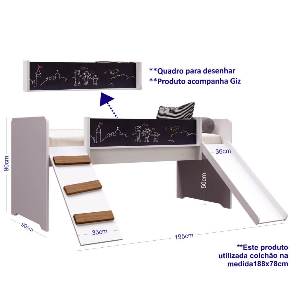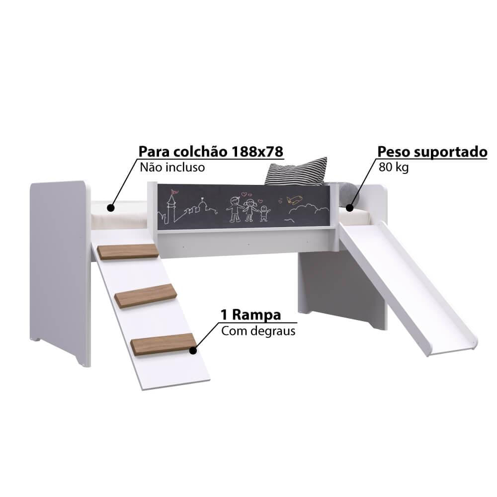 Cama Playground Com Rampa E Escorregador - Brancoque Tal Uma Cama Playground Para Seu Filho Ou Filha Ter Uma Aventura Sem Mesmo Precisar Sair Do Quarto? A Cama Playground Com Escorregador E Rampa É Perfeita Para Que Seu(sua) Filho(a) Tenha Grandes Aventuras Em Pouco Espaço. Um Móvel Que Desperta A Criatividade Da Criança, Com Painel De Lousa Para Desenhar E Rampa Para Escalada. Um Jeito Prático, Lúdico E Moderno De Fazer Do Quarto, O Local Mais Visitado Da Casa.madeira:mdp É Formado Por Três Camadas De Partículas De Madeira, Uma Mais Grossa No Meio E Duas Finas Nas Superfícies. Esse Tipo De Composição Faz Com Que O Produto Tenha Uma Maior Resistência Estrutural, Fazendo Com Que Aguente Mais Peso, Apesar De Ser Mais Leve Que O Mdf. Já O Mdp É Mais Utilizado Em Móveis De Espessura Grossa, Pois Ele É Mais Leve E Tem Uma Boa Estrutura, Aguentando Mais Peso. Outra Vantagem É Que Ele É Mais Resistente À Umidade.acabamento Bpé Muito Utilizado Nas Indústrias De Móveis Planejados, Por Ser Um Acabamento Mais Resistente A Arranhões E Manchas. Produzido A Partir De Um Papel Melamínico De Baixa Pressão (bp) Unindo-se Ao Painel, Após A Impregnação Do Papel Com Resina, Originando O Revestimento. Os Papéis Utilizados Para Bp Possuem Gramatura Entre 70 A 80 G/m, Podendo Chegar A 180g/m. Todo Esse Processo É Feito Pela Fábrica De Chapas E Enviado Para A Indústria De Móveis Já Pronta.garantia:6 Meses - Garantia De Fábricacaracterísticas- Cor: Branco.- Estrutura: Mdp.- Acabamento: Bp Fosco.- 1 Cama Infantil.- 1 Rampa Com Degraus .- 1 Escorregador.- 1 Painel Lousa De Giz.- Kit Giz Para Lousa.- Colchão Solteiro 188x78 Cm. O Colchão Não Está Incluso Ao Produto. Vendido Separadamente.- Peso Suportado Por Cama: 80 Kg.- Recomendado Para Criança A Partir De 3 Anos.- Marca Completa Móveis.- Garantia De 3 Meses Para Defeito De Fabricação.dimensões: Peso: 55,65 Kgaltura: 90 Cmlargura: 195 Cmprofundidade: 163 Cmoutras Informações- Montagem Não Inclusa.- Na Limpeza Não Utilizar Produtos Químicos E Abrasivos, Usar Apenas Um Pano Umedecido, Para Garantir A Maior Durabilidade Do Móvel.- Os Objetos Que Ambientam As Fotos Não Acompanham O Produto.- Imagens Meramente Ilustrativas. Cores E Tonalidades Podem Variar.- Antes De Comprar O Seu Produto Verifique As Medidas, O Local Onde Pretende Instalar E Se É Necessário Contratar O Serviço De Um Profissional Qualificado.
