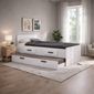 Cama Cindy Solteiro com Gavetas e Cama Auxiliar – Branco. A Cama Cindy Solteiro é a escolha perfeita para quem busca funcionalidade, organização e design moderno em um só produto. Ideal para quartos infantis, juvenis ou de hóspedes, ela otimiza o espaço sem abrir mão do conforto e da beleza. Produzida em Mdp de alta qualidade, a Cama Cindy conta com duas gavetas frontais espaçosas, ideais para guardar roupas de cama, brinquedos ou objetos do dia a dia, além de cama auxiliar deslizante, perfeita para receber visitas ou acomodar irmãos com praticidade. Seu acabamento na cor branca traz leveza ao ambiente e combina facilmente com diferentes estilos de decoração. Os puxadores em destaque agregam charme e um toque contemporâneo ao móvel.