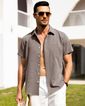 Moda e AcessóriosModaCamisasCamisa Alimens & Gentle De Algodão E Linho De Manga Curta Marrom Para Homens
