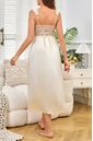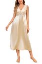 Camisa De Dormir Feminina Alcea Rosea, Seda, Cetim, Renda, Champanhe