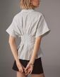 - Característica: As Roupas Casuais Femininas Apresentam Botões Frontais, Manga Curta E Bufante, Cintura Plissada Com Bainha Peplum, Estampa Listrada Clássica, Gola De Lapela, Caimento Justo. Blusa Casual Moderna Para Escritório De Negócios 2025, Blusas Casuais De Verão, Básicas E Elegantes, Blusas Casuais De Negócios Para Mulheres