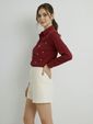 Camisa Social Feminina Vinho Com Flor De Strass Margarida Premium Blusa De Luxo Manga Longa Elegante