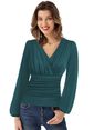 productdescriptiondto(title=camisa Envolvente Grace Karin De Manga Comprida Com Decote Em V Para Mulheres, Lang=pt, Details=grace Karin Blusa Feminina 2024 Elegante, Gola V, Trabalho, Outono, Moda, Manga Comprida, Elegante, Casual, Franzido, Azul, Verde