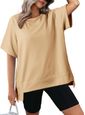 - Atualize Seu Guarda-roupa Casual Com Essas Camisetas Femininas Grandes. Feitas Com Gola Redonda Confortável E Mangas Curtas, Estas Camisetas Oferecem Um Ajuste Solto Que É Perfeito Para Um Visual Descontraído E Descontraído. A Bainha Irregular Adiciona Um Toque Elegante, Enquanto As Cores Sólidas Os Tornam Versáteis Para Qualquer Ocasião.