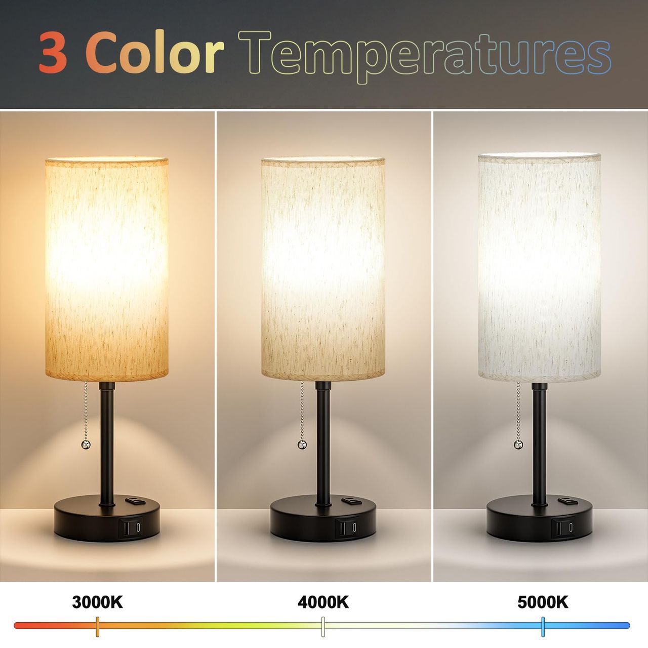 Candeeiro De Mesa Pull Chain Para Quarto - 3 Temperaturas De Cor, Carregamento Usb A+c, Tomada Ac, Luminária De Cabeceira De 17,4 Polegadas De Altura Com Lâmpada Led E26 - 1. Design Maior - Em Resposta Às Solicitações Dos Clientes, Atualizamos Este Pequeno Candeeiro De Mesa Com Um Tamanho Maior, Mais Recursos E Uma Luz Mais Brilhante! Você Pode Colocá-lo Em Seu Quarto, Sala De Estar, Sala De Estudo E Assim Por Diante, Conforme Desejar. Esta É Uma Lâmpada De Tamanho Grande Projetada Especificamente Para Espaços Maiores!