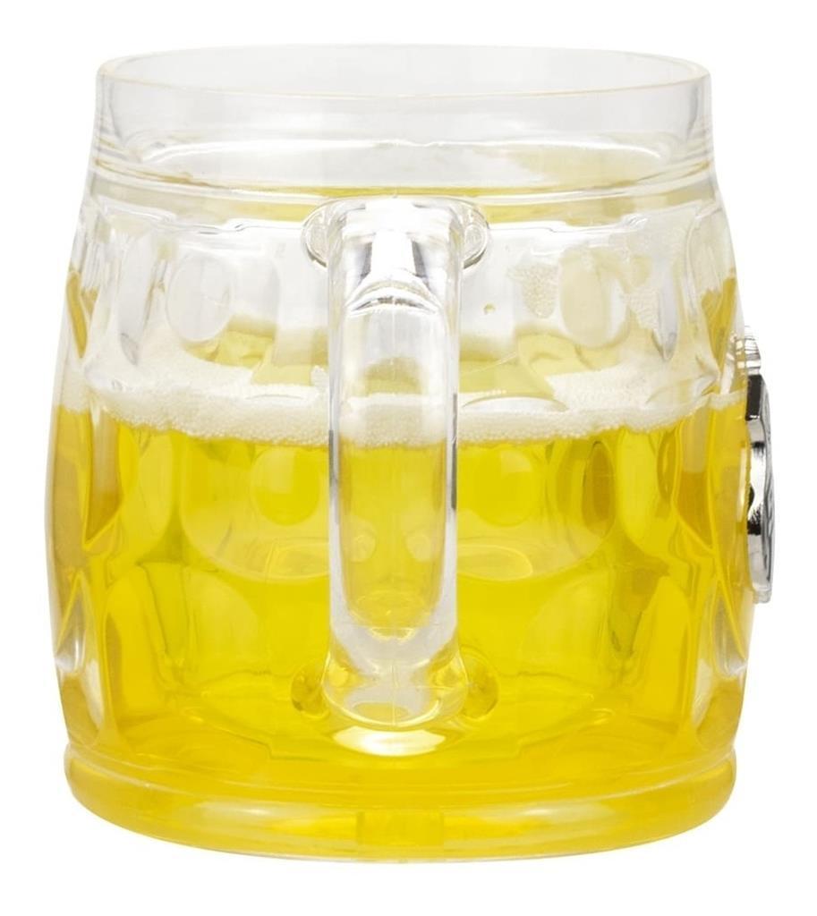 Caneca De Base Grossa Revestimento Com Líquido Que Faz Parecer Que A Caneca Está Sempre Cheia De Cerveja. Vem Com Brasão De Metal Do Santos. Capacidade 400 Ml. Material: Plástico