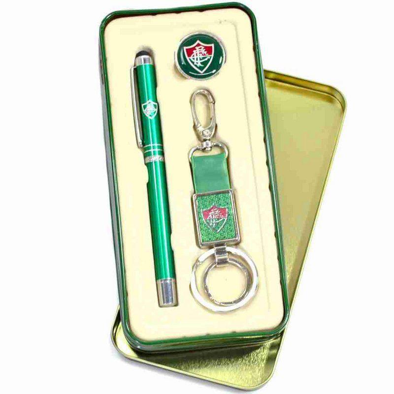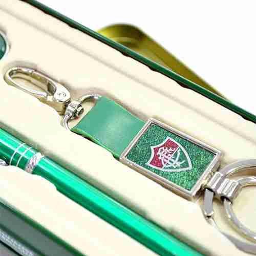 Kit Caneta De Metal, Chaveiro De Couro Sintético E Broche - Fluminense.