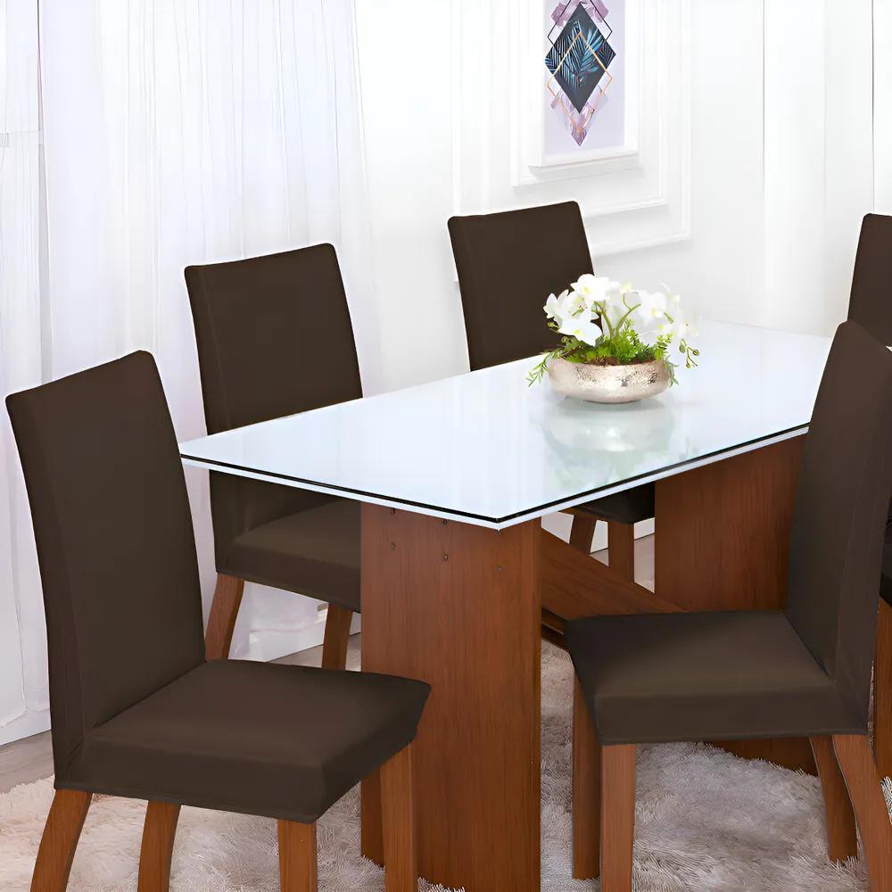 Capa Cadeira 4 Lugares Jantar Malha E Elástico Resistente Co