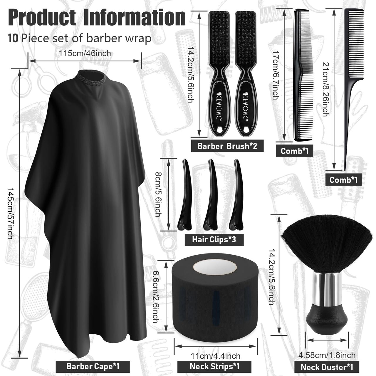 - 【o Pacote Inclui】acessórios De Barbeiro Essenciais Para Barbearias E Barbeiros Domésticos, 1 Capa De Barbeiro De Salão Com Fecho De Pressão, 1 Escova De Espanador De Pescoço, 2 Escovas De Limpeza De Barbeiro, 2 Pentes De Cabelo, 3 Grampos De Cabelo, 1 X Tiras De Pescoço. 2 O Acessório Perfeito Para Todos Os Barbeiros E Estilistas.