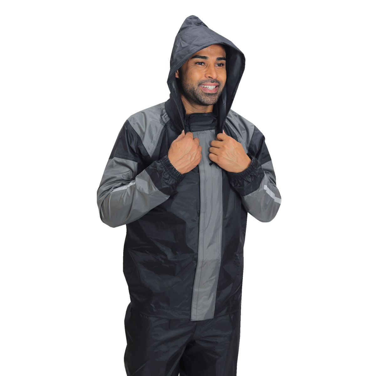 Produzida Em Náilon, Com Capuz, Leve, Compacta, 100% Impermeável. Reflexível Nas Costas, Nos Braços E Nas Pernas. Ajustes Nas Mangas Com Fitas Autocolantes E Elástico, Na Cintura Com Elástico E Nas Pernas Com Fitas Autocolantes, Elástico E Zíper.