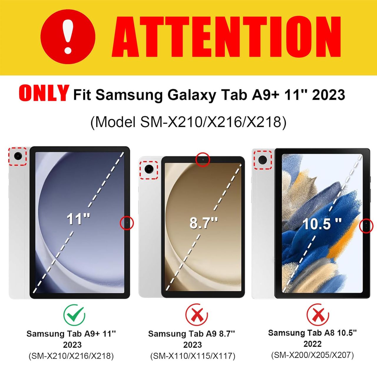 - 【modelo Aplicável】compatível Apenas Com Samsung Galaxy Tab A9 Plus/a9+ 27.9 Cm 2023 Sm-x210 Sm-x215 Sm-x216 Sm-x218, Verifique O Número Do Modelo Sm-x*** Nas "configurações" Do Tablet Antes De Comprar. Este Produto Não Pode Ser Usado Com Outros Modelos Não Compatíveis. Tablet E Caneta Stylus Não Incluídos Neste Produto