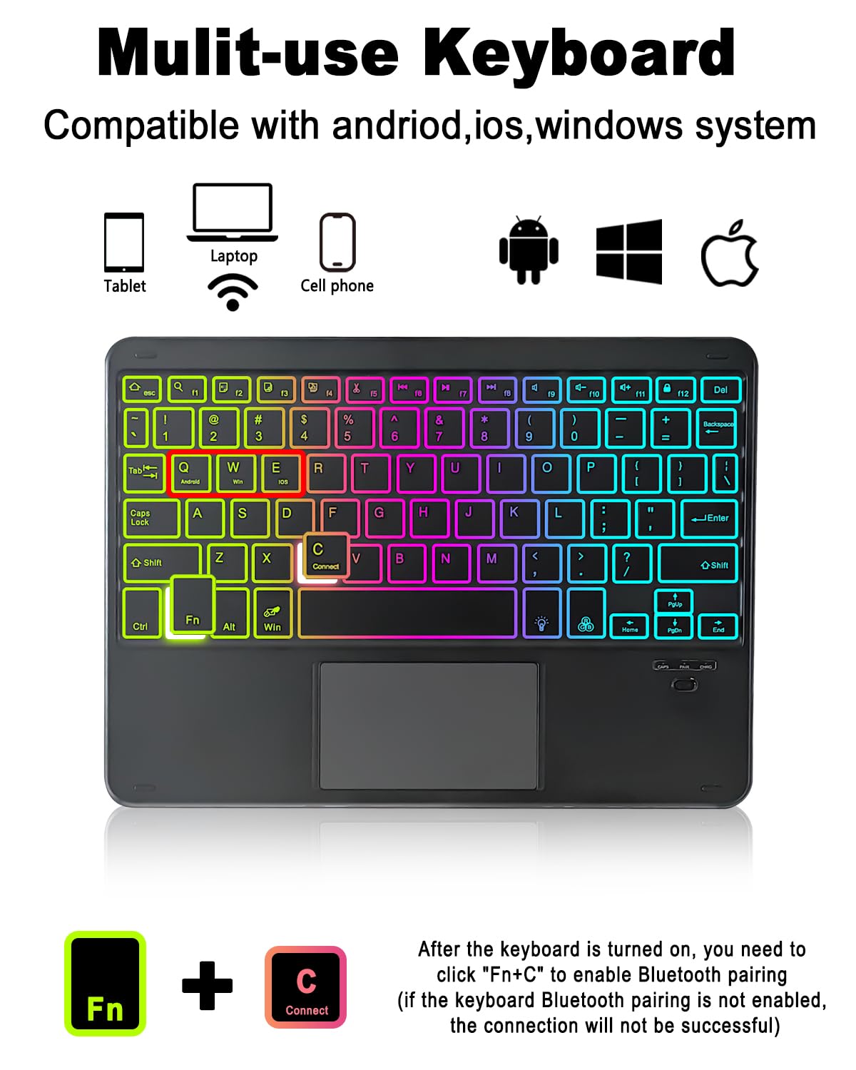 - 【teclado Destacável + Luz De Fundo Arco-íris】o Teclado Pode Ser Removido E Usado Sozinho, A Absorção Magnética É Mais Conveniente. A Bateria Recarregável Embutida Não Precisa Substituir A Bateria. A Luz De Fundo Arco-íris E O Modo De Luz De Respiração Alternam, Permitindo Que Você Digite Facilmente No Ambiente Escuro. A Primeira Linha Do Teclado Tem Teclas De Atalho Funcionais, O Que Pode Melhorar A Eficiência De Forma Mais Eficaz