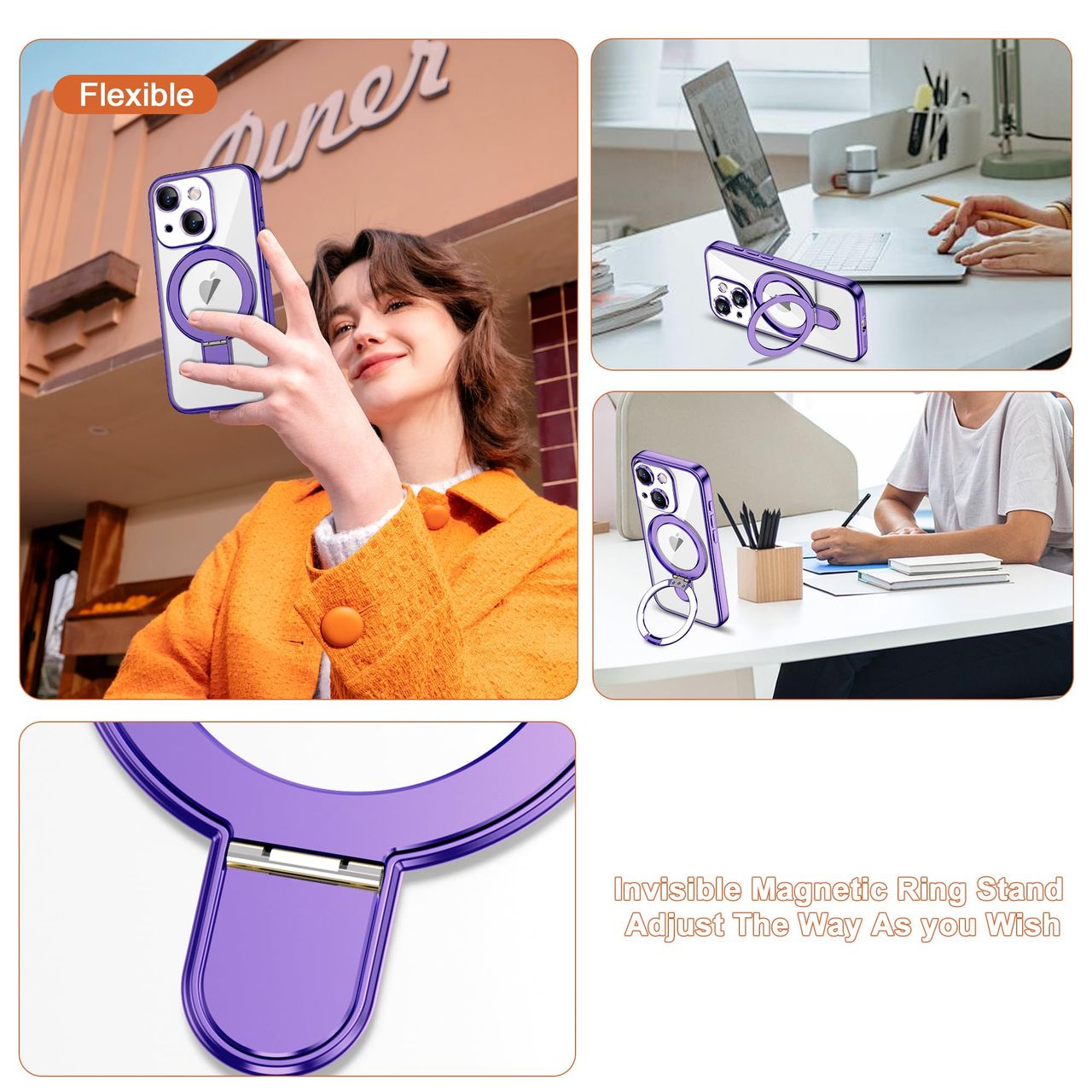 - 【suporte De Anel Magnético】a Capa De Celular Para Iphone 15 Plus Com Suporte De Anel Magnético, Combina A Tecnologia De Magnetismo Com Um Suporte Dobrável Que Pode Evitar Que Acessórios Mag-safe Caiam. O Suporte Adota Tecnologia De Rolamento Não Indutivo Que Pode Ser Ajustada Entre 0° E 120°, Este Suporte Feito De Ímã Pode Ser Suportado Horizontal Ou Verticalmente, É Este Suporte Que Suporta Seu Telefone Liberando Suas Mãos Como Um Suporte Para Aprender E Trabalhar, Cozinhar Ou Assistir A Vídeos.