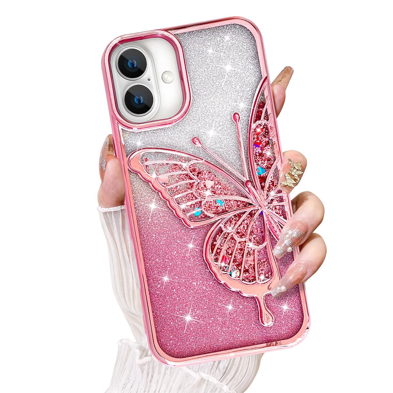 - Projetada Para Iphone 16 Plus, Capa De Telefone Com Padrão De Borboleta 3d Com Glitter, Não É Compatível Com Outros Modelos, Verifique O Modelo Do Seu Telefone Cuidadosamente Ao Comprar