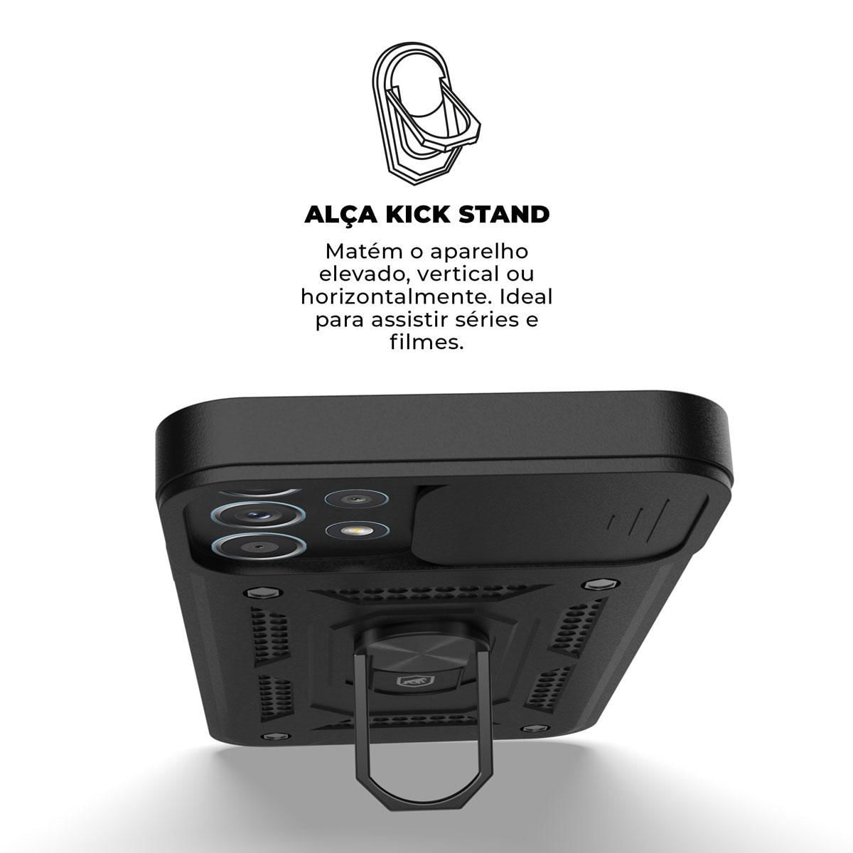 a Capa Dinamic Protect Cam Para Samsung Galaxy A32 4g, Da Gorila Shield Se Encaixa Perfeitamente Ao Seu Aparelho, Mantendo O Visual Do Celular E Garantindo Segurança Reforçada Contra Impactos E Dados A Tela. Produzida Com A Tecnologia Elevation Tall Grade, Uma Elevação Na Parte Frontal Da Case, Diminuindo O Atrito Entre A Tela E A Superficie, A Capa Também Possui A Alça Kick Stand Para Deixar O Dispositivo Em Uma Inclinação De Até 60, Situada Na Parte Traseira Da Capa. Além Disso, Possui Uma Janela De Proteção Que Garante Segurança Adicional A Lente Da Câmera Traseira Do Seu Celular.