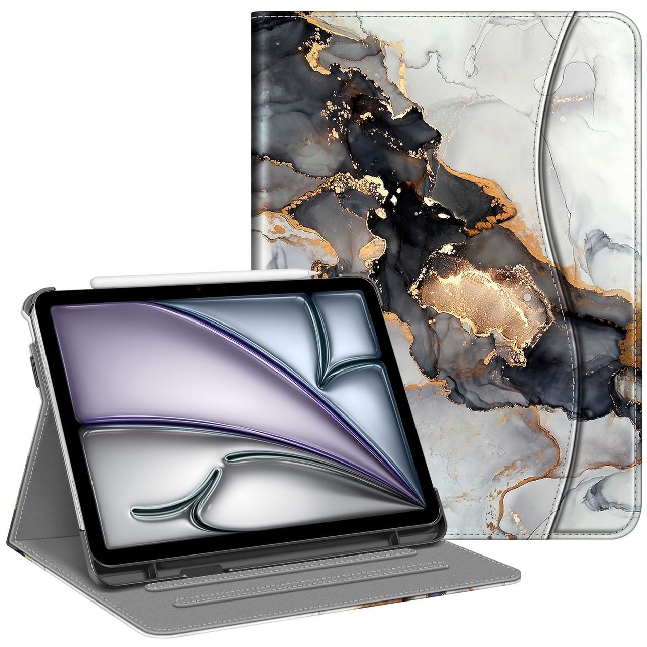 Fintie Capa Para Ipad Air 11 Polegadas M3 (2025)/m2 (2024), Ipad Air 5ª (2022)/4ª Geração (2020) 10,9 Polegadas, Capa Protetora De Visualização Multiângulo Com Porta-lápis E Bolso, Mármore Nublado
