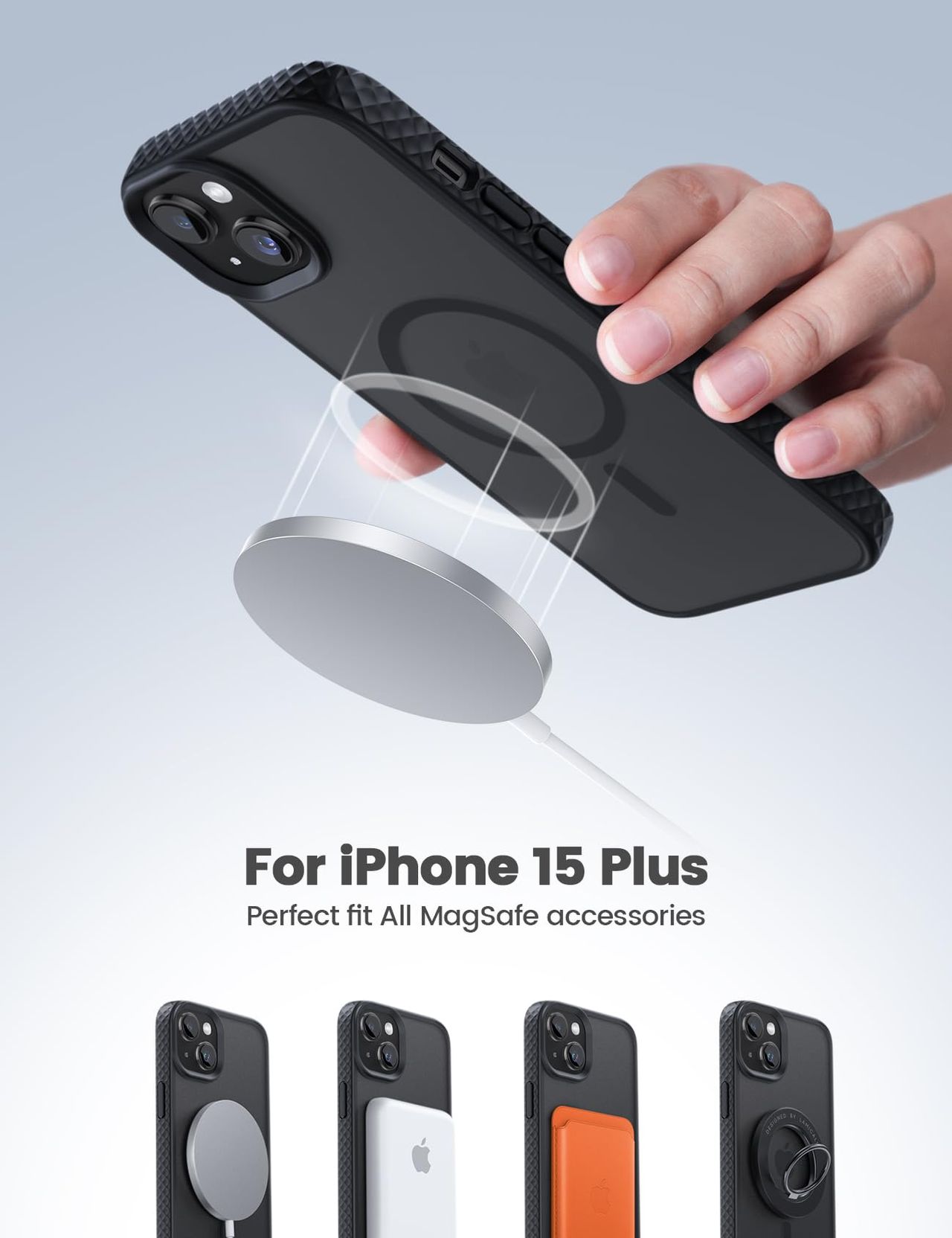 - 【super Ímã Para Magsafe】com Super Ímãs N52 De 38 X E Design De Círculo Magnético Atualizado, Esta Capa Para Iphone 15 Plus Garante Fixação Segura Ao Carregamento Sem Fio Rápido E Seguro. Pode Se Conectar Firmemente A Todos Os Acessórios Mag Safe, Como O Carregador/anel/carteira Magsafe, Carregamento Sem Fio Mag Safe, Suporte Para Carro, Etc.