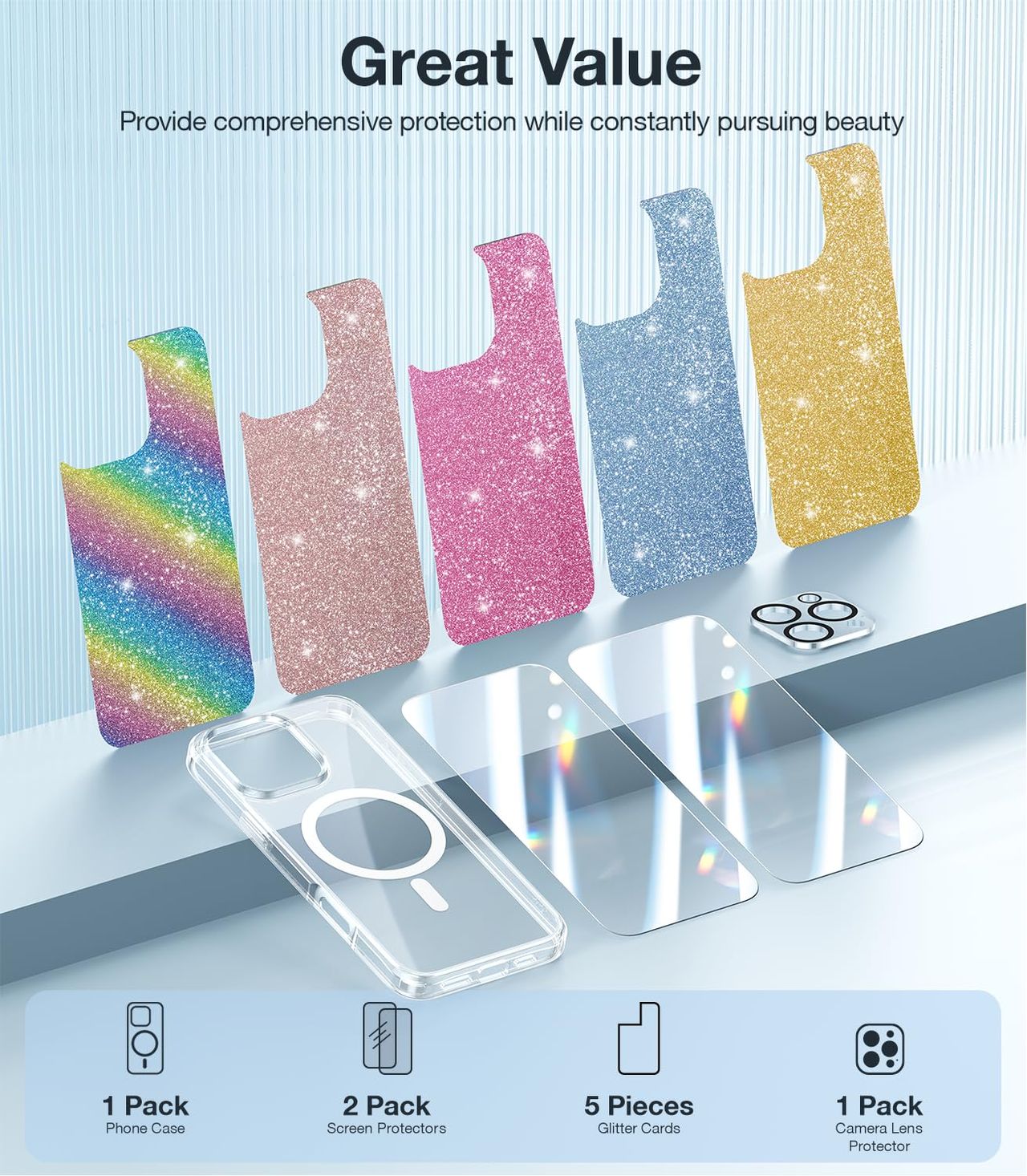 - Vem Com 5 Pacotes De Cartões Com Glitter + 2 Protetores De Tela Hd Transparentes + 1 Pacote Com Protetor De Lente De Câmera +: Os Cartões De Glitter Podem Ser Facilmente Adicionados À Capa, Faça Você Mesmo Seu Novo Telefone Para Eventos Especiais Ou Celebrações, Dando Ao Seu Telefone Um Visual Personalizado E Exclusivo. Os Protetores De Tela E A Lente Da Câmera São Fáceis De Instalar E Remover, Mantendo Seu Telefone Seguro E Protegido