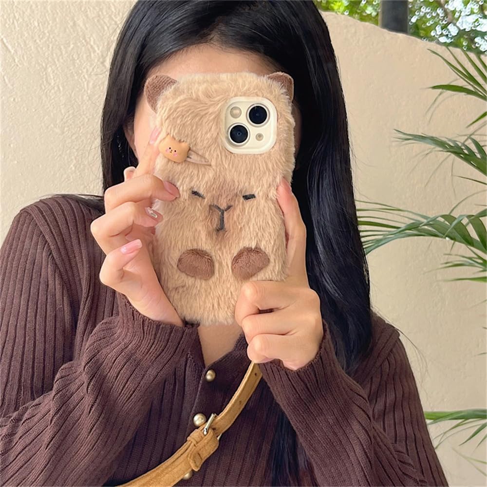 - O Design Peludo Dá Ao Seu Telefone Uma Aparência Aconchegante E Protetora Neste Outono E Inverno Frios, Com Um Lindo Chaveiro De Pelúcia De Capivara Que É Uma Decoração Moderna Para Mulheres E Amigas.