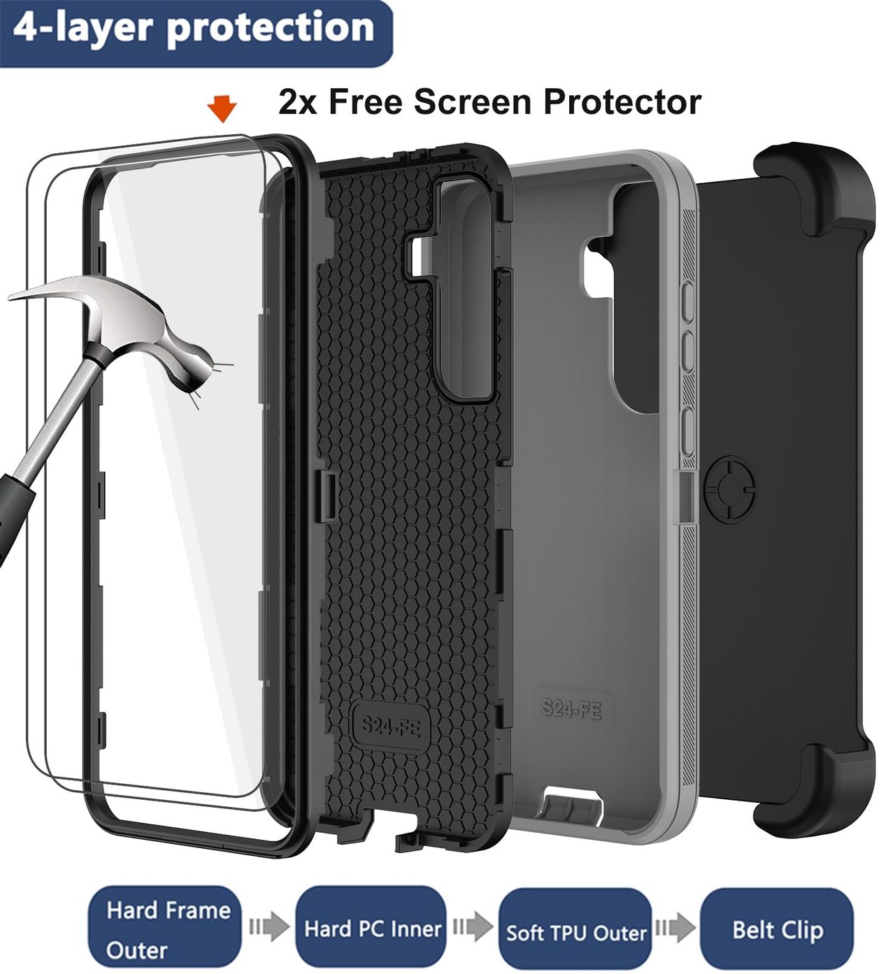 - Proteção De Nível Militar: A Capa 3 Em 1 De Camada Tripla Para Samsung S24 Fe Oferece Proteção De Cobertura Total De 360 Graus. Policarbonato Rígido Híbrido Premium (pc) + Poliuretano Termoplástico Macio (tpu/silicone). Atendendo Ao Padrão Militar E Protegendo Bem Seu Telefone Contra Quedas De Até 3 M (10 Pés) De Altura
