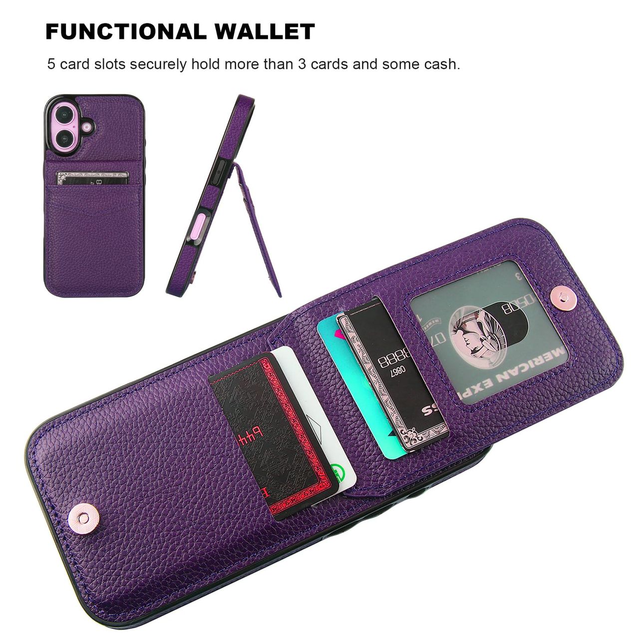 - [carteira Funcional]: 5 Compartimentos Para Cartões Armazenam Com Segurança Mais De 3 Cartões E Algum Dinheiro (identidades, Cartões De Débito, Cartões De Crédito, Carteira De Motorista, Etc.) Sem Levar Sua Carteira Para Fora. Os Botões Magnéticos Podem Manter Sua Capa Fina E Elegante E Manter Seu Dinheiro E Cartões Seguros.