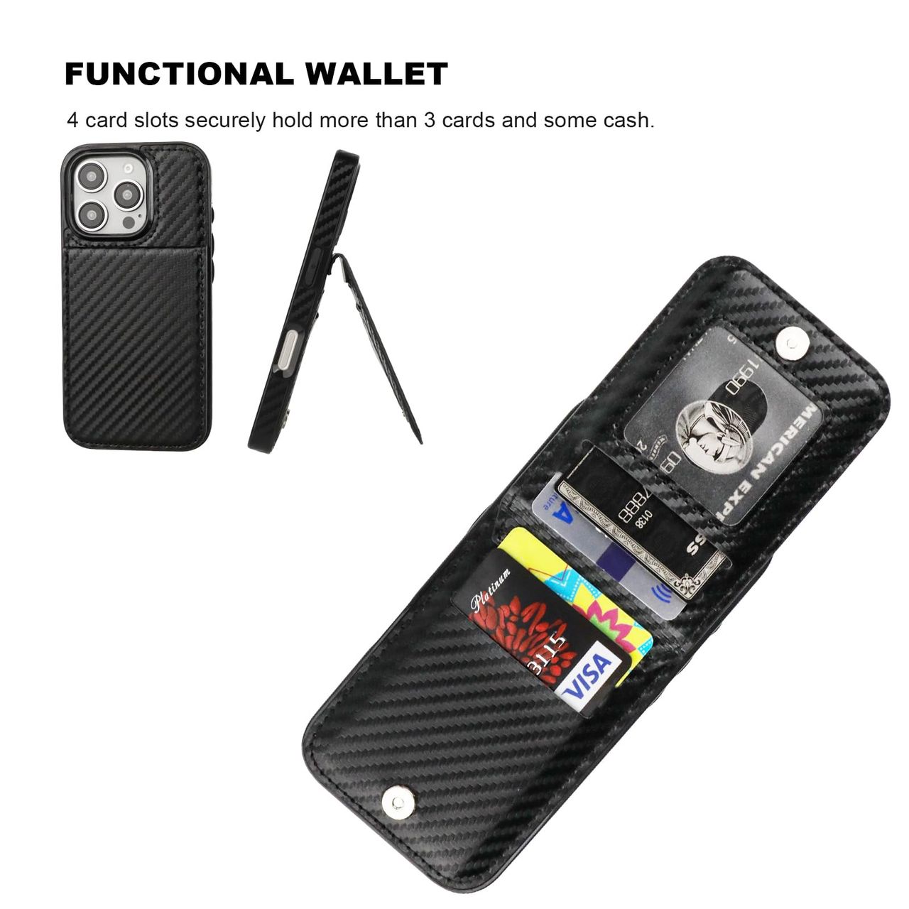 - [carteira Funcional]: 5 Compartimentos Para Cartões Armazenam Com Segurança Mais De 3 Cartões E Algum Dinheiro (identidades, Cartões De Débito, Cartões De Crédito, Carteira De Motorista, Etc.) Sem Levar Sua Carteira Para Fora. Os Botões Magnéticos Podem Manter Sua Capa Fina E Elegante E Manter Seu Dinheiro E Cartões Seguros.