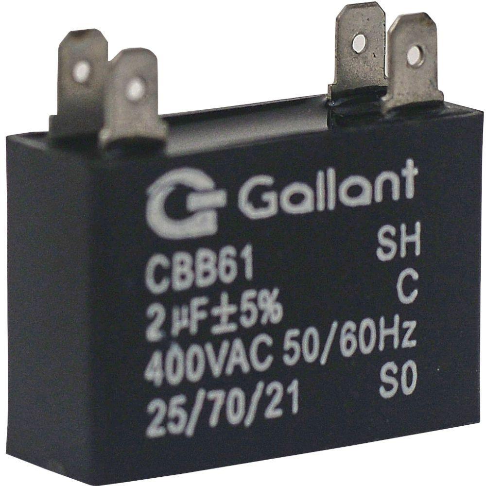 O capacitor Cbb61 Gallant de 2f foi desenvolvido para garantir a partida e o funcionamento contínuo de motores elétricos utilizados em sistemas de climatização. Com estrutura retangular em polipropileno e tensão de operação de 400vac, oferece estabilidade, segurança e longa vida útil. Compatível com diversos tipos de aparelhos de ar-condicionado, incluindo modelos split, piso teto, hi-wall, cassete (k7), inverter e on-off, é ideal para reposição em uma ampla variedade de marcas nacionais e importadas.