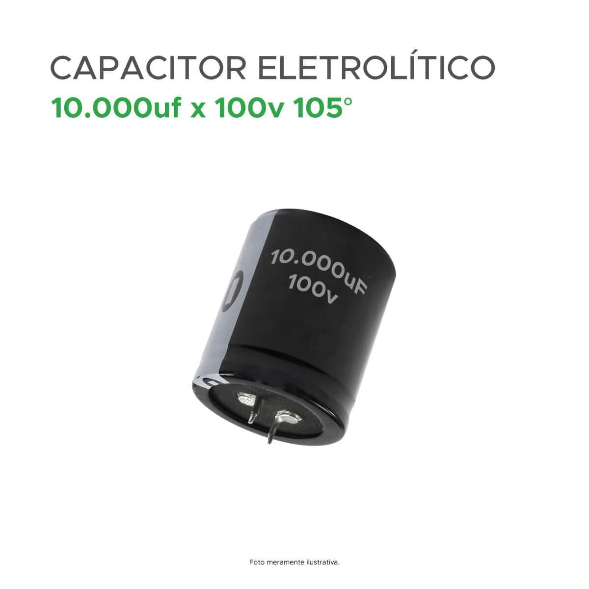 Capacitância De 10000 Microfarads E Uma Tensão Nominal De 100 Volts, Projetado Para Operar A Uma Temperatura Máxima De 105 Graus Celsius.