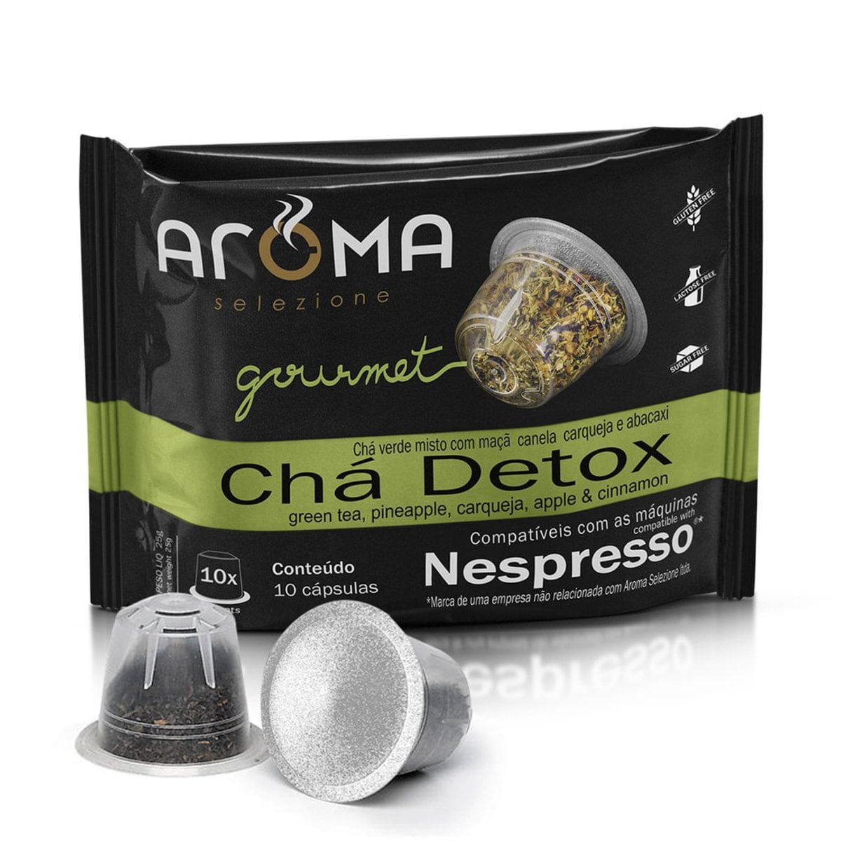 Com ingredientes de alta qualidade selecionados, as cápsulas individuais Aroma Selezione Citrus Twist Tea são a forma mais fácil de preparar uma bebida rica em sabor quando você quiser. Uma mistura incomparável de laranja, rosa silvestre, maçã, camomila, capim cidreira, hibisco e jasmim Um chá quente traz conforto a todas as horas do dia. Tanto à noite quanto após as refeições, uma xícara da bebida é garantia do sentir-se bem. As cápsulas Aroma Selezione Chá Detox ajudam você a preparar uma dose onde quer que você vá, com uma mistura selecionada de chá verde, maçã, canela, carqueja e abacaxi. Sem glúten, lactose e açúcar em sua composição, é perfeito para os momentos em que você precisa se sentir mais leve.