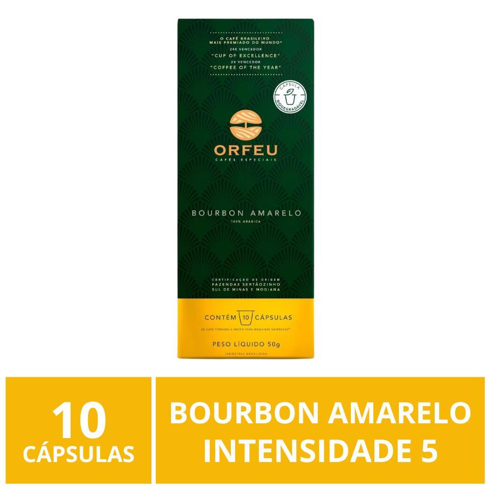 Orfeu Bourbon Amarelo Em Cápsulas É Um Café 100% Arábica, De Torra Média-clara Que Apresenta Notas Cítricas, Principalmente De Lima E Tangerina. Possui Corpo Baixo, Acidez Acentuada E Aromas E Sabores Complexos. Sua Intensidade É Equivalente A 5. E A Dosagem Indicada Para Um Espresso É De 40ml.