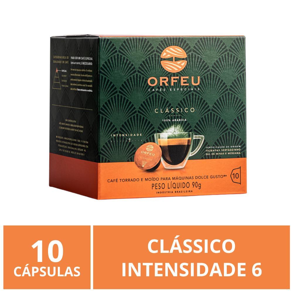orfeu Clássico Em Cápsulas É Um Café 100% Arábica, Equilibrado E De Torra Média. Apresenta Notas Florais, Frutadas E De Caramelo. Possui Doçura Alta, Acidez Equilibrada, Corpo Aveludado E Aromas Complexos, Com Uma Finalização Persistente E Prazerosa. Sua Intensidade É Equivalente A 6. E A Dosagem Indicada Para Um Espresso É De 40ml.