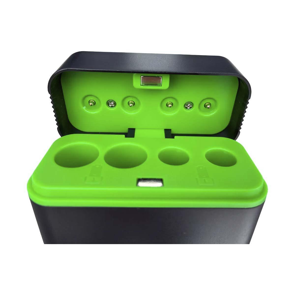 Compatível com pilhas Ni-MH (níquel-metal hidreto) de 1.2V, o modelo conta com 4 canais de carga independentes, permitindo o carregamento simultâneo de diferentes combinações: de 1 a 2 pilhas AA e/ou 1 a 2 pilhas AAA.